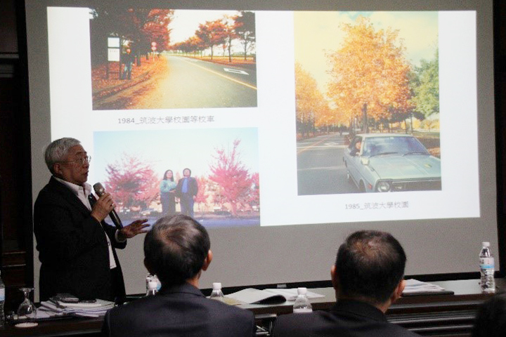 In the meeting, Vice President Kanaho called for cooperation in funds to mark the 50th anniversary of our school. Next, Professor Hiroshi Watanabe of National Chiao Tung University, a graduate of the University of Tsukuba and Mr. Chung You-Hui who was an international student of the University of Tsukuba and now is a printmaker gave a presentation on memories from the University of Tsukuba and their activities which attracted attendees.