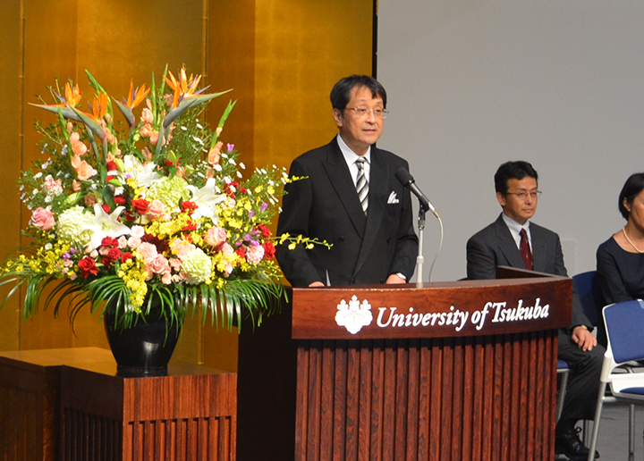 President Nagata making a speech at the ceremony