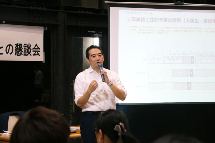 The 7th round-table meeting with the Mayor of Tsukuba and students at the University of Tsukuba was held on September 30. A total of 33 students including representatives of ZENDAIKAI (Students' Representative Council) and undergraduate and graduate students.
