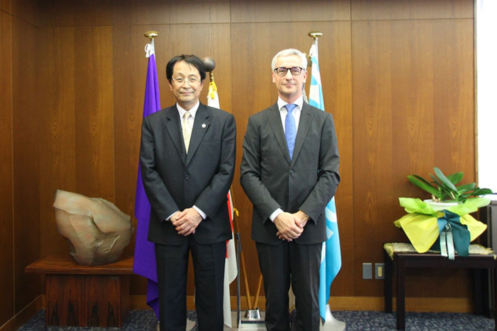 Dr. Jernej Pikalo, Minister for Education, Science and Sport of the Republic of Slovenia and Dr. Ana POLAK PETRI?, PhD Ambassador Extraordinary and Plenipotentiary of the Republic of Slovenia to Japan made a courtesy visit to President Nagata, Vice President BENTON Caroline F. (Global Affairs), Executive Officer Saburo Aoki, Executive Officer Jun Ikeda, and Executive Officer Osamu Ohneda on October 8.