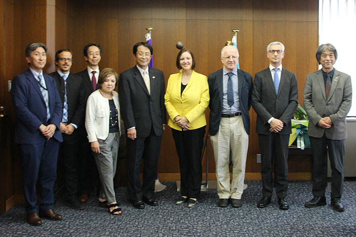 In the visit, they exchanged opinions on student exchange programs and research collaboration in the future and touched on the topics of the Tsukuba Conference 2019 which was held from October 2 to 4 and Tsukuba as a science city.