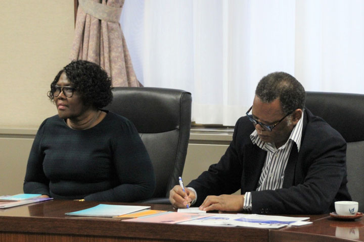 Professor Xoliswa Mtose, Vice Chancellor, and Professor Sipho Seepe of the University of Zululand in South Africa made a courtesy visit to Vice President BENTON Caroline F. (Global Affairs), Professor MORIO Takahiro of the Office of Global Initiatives, and Associate Professor MOGES Abu Girma of the Faculty of Humanities and Social Sciences.