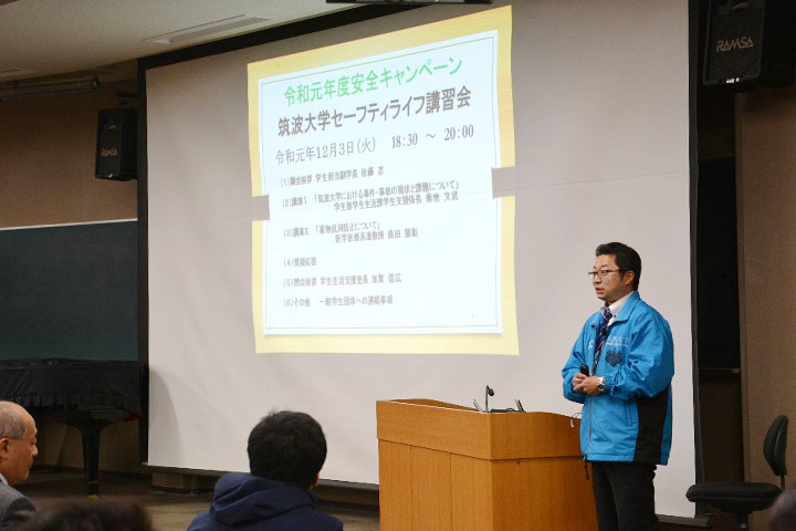 The University of Tsukuba hopes all students live a safe and sound and meaningful student life. Your safety awareness is the key to safe living; for participants, please share information from the seminar with your friends and members of your group.