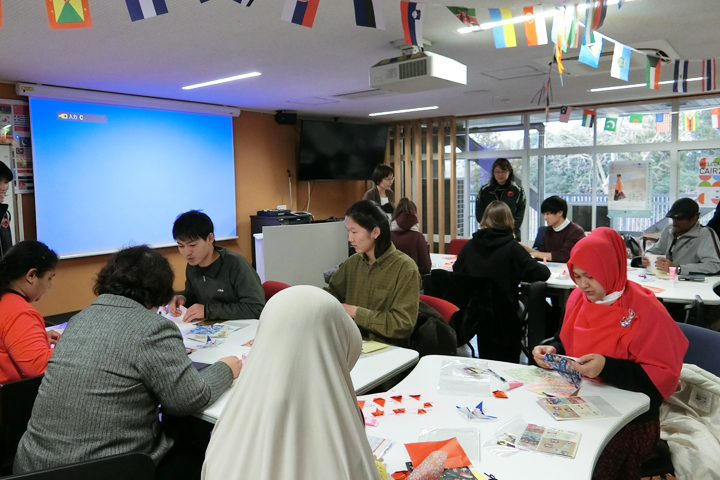 The "ORIGAMI Workshop" was held, organized by the Campus Globalization Division of Global Commons, at Student Commons of the university on February 14. The workshop aimed at introducing Japanese culture to international students and get them to experience Japanese culture. It introduced Japan's doll festival "hinamatsuri", a traditional event in spring through the art of paper folding.