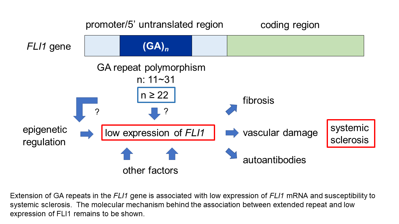 "Our results show an association between GA repeats over 22 in the FLI1 gene and systemic sclerosis," says lead author of the study Keita Yamashita. "We next wanted to have a closer look at the clinical characteristics of systemic sclerosis patients with FLI1 L alleles".