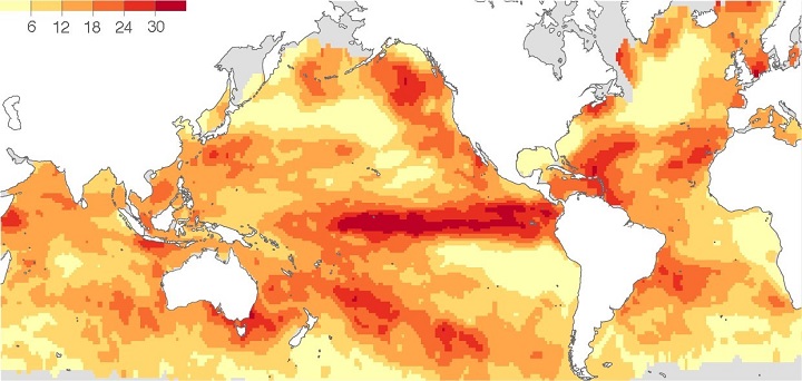 筑波大学 下田臨海実験センター ベンジャミン ハーベイ助教は、7カ国18組織が参加する国際共同研究により、複数の熱波の影響を同一手法で評価し、その影響を定量化することで、海洋における熱波が海の生態系に甚大な影響を及ぼすことを明らかにしました。また、太平洋、大西洋、インド洋は特に熱波に脆弱であることが明らかになりました。気候変動がこのまま進行し続けると、海洋生態系の激変が生じ、生態系サービスの低下が生じることが予想されます。