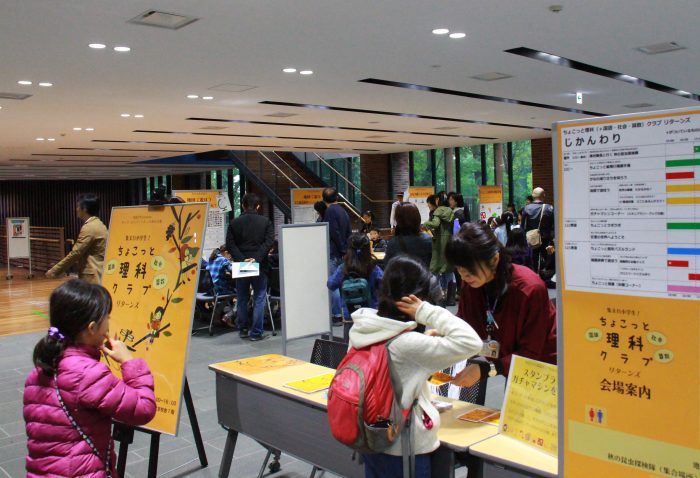 10月29日,筑波大学東京キャンパス文京校舎にて,「ちょこっと理科(+国語・社会・算数)クラブ リターンズ」を開催しました。これは,春の全国科学技術週間で開催している子ども向けイベント「キッズ・ユニバーシティ」の「課外活動」版として実施したものです。当日は,筑波大学の教員や学生の指導による,簡単で楽しい実験や観察,工作,国語,社会,算数,虫の観察など,いつもの学校とはちょっと違う,筑波大学テイストの学習体験コーナーを取り揃えました。台風22号による悪天候にもかかわらず,300名あまりの児童とその保護者で,会場は活況を呈しました。