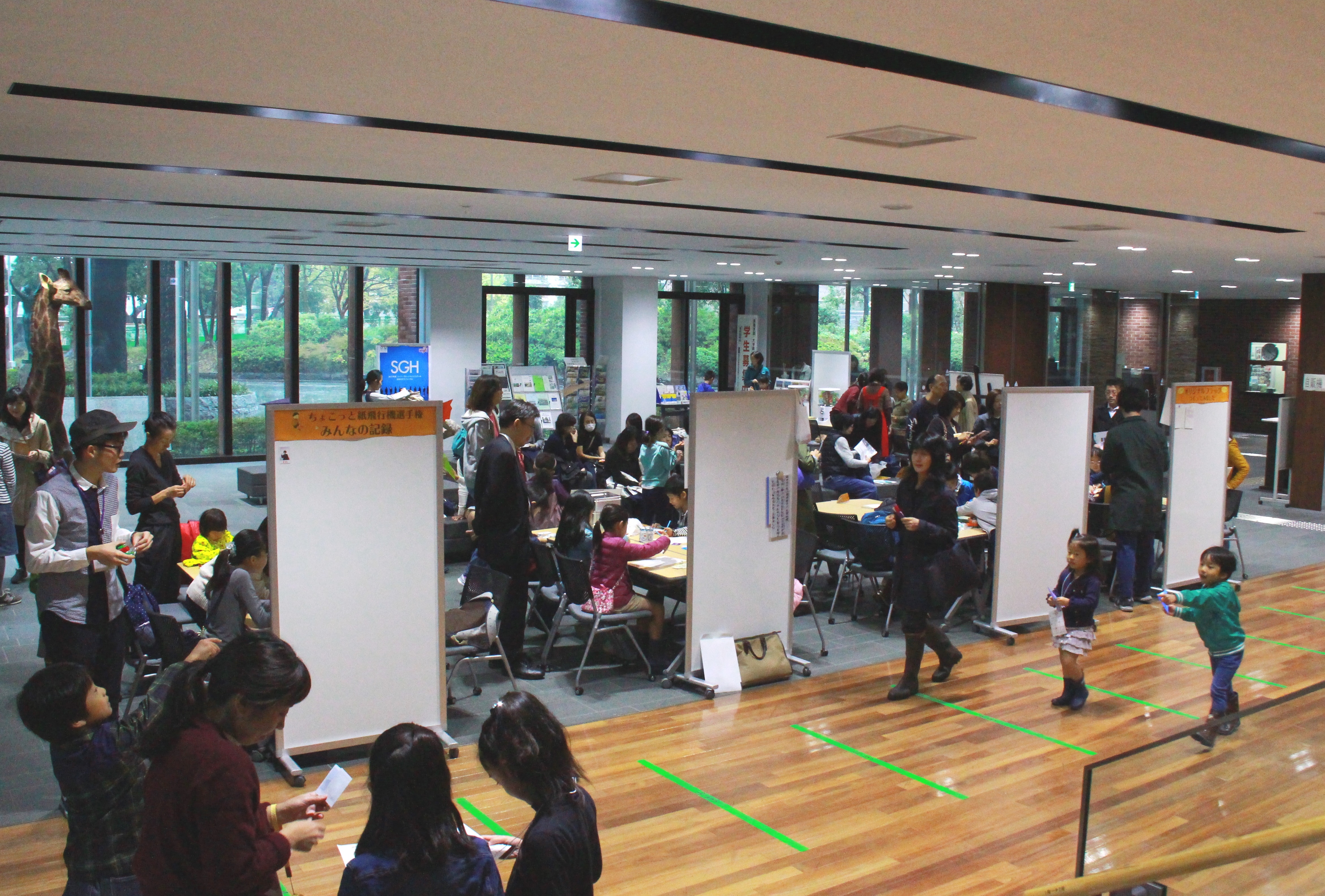 (広いロビーを活用して「ちょこっと紙飛行機選手権」も)