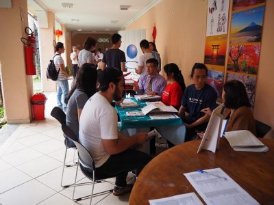 夜の開催にも関わらず,日本留学に興味をもつ生徒やその父兄が途切れることなく訪れ,終了間際まで個別相談が行われました。