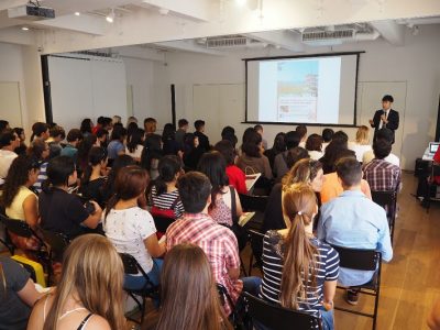 サンパウロの目抜き通りに今年オープンしたジャパンハウスで,初の日本留学フェアを開催しました。各大学の紹介プレゼンテーション時には立ち見が出るほどの盛況で,日本留学への関心の高さが伺えました。600名を超える来場者が訪れ,活発な質問がなされました。