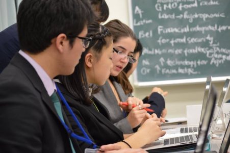 平成29年10月に開設した文理融合の学士課程横断型プログラムである「地球規模課題学位プログラム(BPGI)」においては,この模擬国連を科目の一部として位置づけすることとしており,今後ますます参加者の増加が見込まれます。