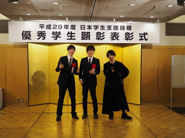 (二人の指導教員である,図書館情報メディア系 落合陽一准教授とともに) 情報学群情報メディア創成学類4年生坂下申世氏と3年生鈴木一平氏が,日本学生支援機構優秀学生顕彰において「大賞」を受賞しました。 それぞれの研究は国際学会においても高く評価されており,JASSO優秀学生顕彰学術分野の選考委員会でもそのことが認められました。