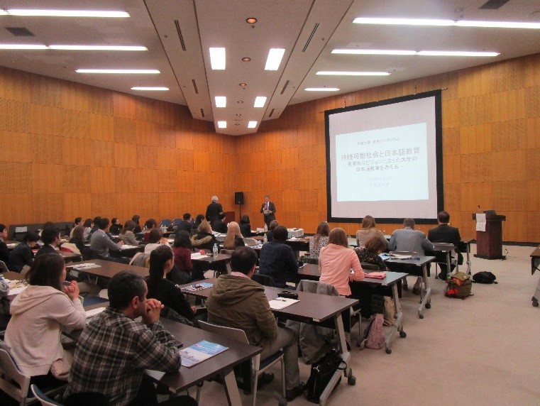 まず,12月6日に実施されたシンポジウム「持続可能社会と日本語教育―長期的なビジョンに立った大学の日本語教育を考える―」(筑波大学CEGLOCとの共催,協力:国際交流基金, 筑波大学人文社会国際比較研究機構ほか)では,国際交流基金日本語国際センター専任講師の柴原智代氏による基調講演に続いて,各大学の日本語教師や日本研究者が,ロシアにおける日本語教育・日本研究の歴史や,自らの日本語教育経験に基づいた教授法などを報告し,活発に意見を交わしました。