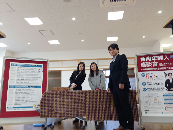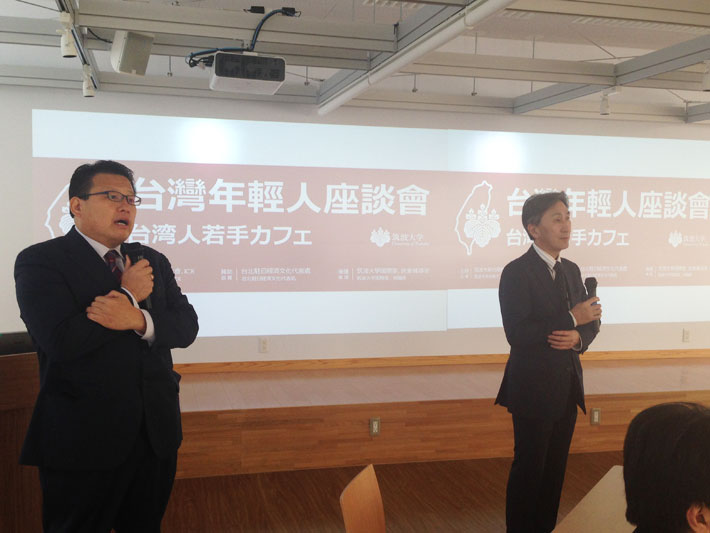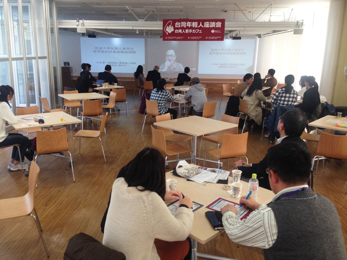 12月16日に台湾人留学生のためのイベント,台湾人若手カフェ~サイエンスとキャリアパス~を開催しました。 午前中のサイエンスカフェでは,国立台湾大学生命科学系 丁照棣氏をお招きし,特別講演を開催しました。その後,各分野の台湾人留学生5名が自身の研究発表を行い,参加者で議論をしました。議論は,予定時間を超えて大いに盛り上がりました。 午後のキャリアパスカフェでは,台北駐日經濟文化代表處 郭仲熙副代表のご挨拶をはじめ,筑波大学卒業生を中心にミューゲイト株式会社代表取締役 謝中天氏,株式会社アシックス 大沼和範氏,LAHO Global董事長 吳三才氏,常陽銀行 市場國際部 加藤倫夫氏と第一線で活躍する企業の方々より講演をいただきました。質疑応答も多く,活発な意見交換が行われました。 その後,留学生,登壇者の懇談を目的とした意見交換会の場を設け,交流を図りました。 今回のイベントを通して50名近い参加者がありました。今後も筑波大学台湾オフィスでは,台湾人留学生の活動をサポートし,留学生同士,また卒業生や校友会とのネットワークを広げる活動をしていきます。
