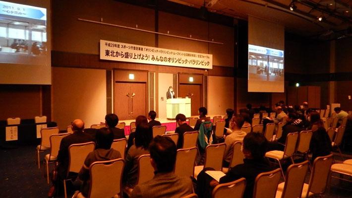 宮城県のオリンピック・パラリンピック教育推進校による実際の学校現場における実践報告,東北ゆかりのアスリートによる講演会,そして市民参加によるフェンシングとボッチャの体験会が行われました。