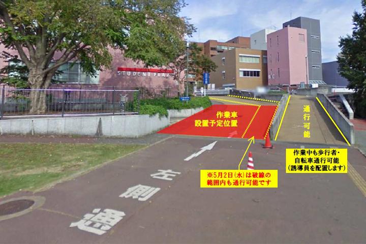【お知らせ】1D棟横通路への作業車両設置について【Notice】Road restriction