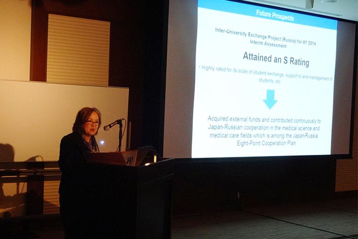 本総会の分科会「医療健康」では,ベントン副学長(国際担当)が,本学が採択された文部科学省による「大学の世界展開力強化事業(ロシア)」(事業名:ロシア語圏諸国を対象とした産業界で活躍できるマルチリンガル人材育成プログラム)における医学分野での学生交流について発表を行いました。