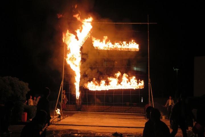 両日とも天候に恵まれ,前夜祭では,野外ライブ,太鼓演奏,トーチトワリング,火文字など,感動のパフォーマンスが披露されました。