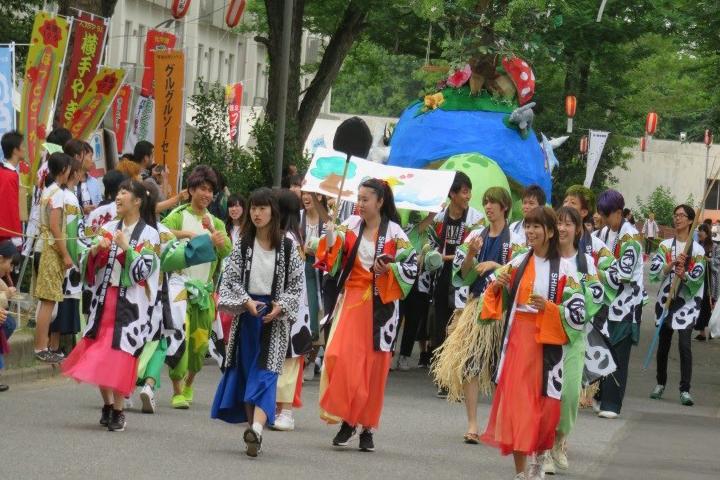本祭のオープニングセレモニーでは,津軽三味線倶楽部無弦塾,応援部WINSのパフォーマンスに始まり,永田恭介学長と宿舎祭実行委員会委員長上田悠登さん(知識情報・図書館学類3年)の挨拶が行われ,「やどかり祭」がスタートしました。