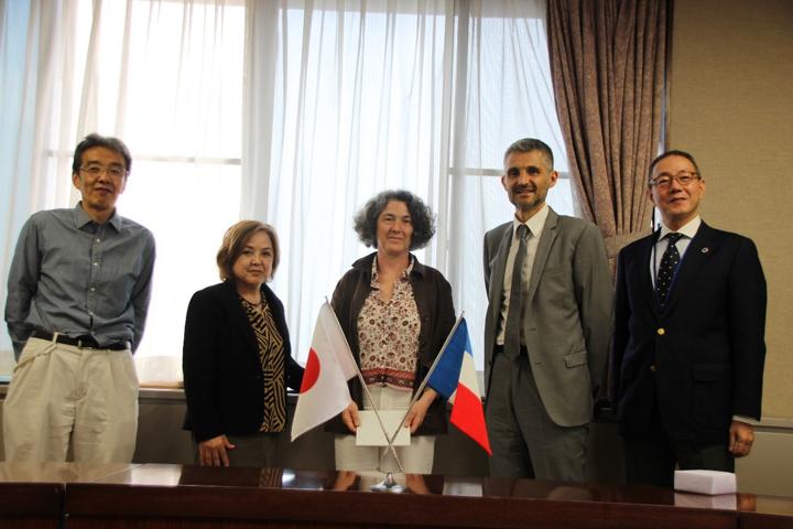 (左から恩田センター長,ベントン副学長,Le Gal La Salle教授,Roig学長,田中健太郎副理事)
