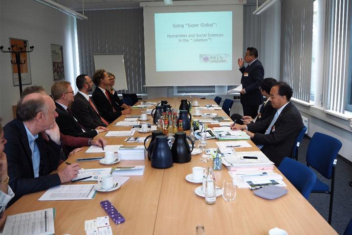 6日には,各分野の分科会やパネルディスカッション,キャンパスツアーが行われました。また,永田学長がボーフム大学のアクセル・シェルメリヒ学長と個別会談を行い,本学のCampus in Campus構想における協定締結に向けて今後具体的な検討を重ねていくことになりました。シェルメリヒ学長との会談後は,社会科学部のステファン・シルム学部長をはじめとする社会科学部教授らとの会談が行われ,Campus in Campusを利用した交流やダブルディグリー,ジョイントディグリーについて活発に意見が交わされました。