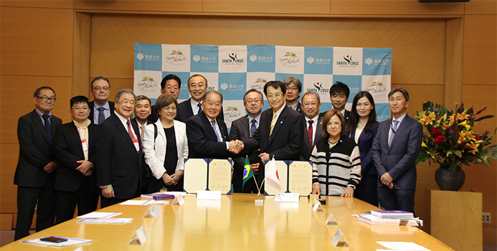 調印式には,筑波会議委員会委員長を務める本学の永田恭介学長とサンタクルス病院理事長・アリアンサ農園オーナー石川レナット氏のほか,本学およびサンタクルス病院関係者等が出席されました。