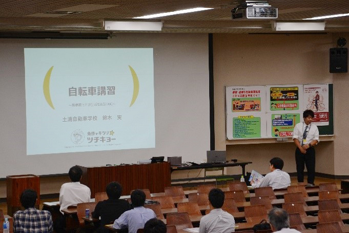 10月3日,自転車交通安全講習会を実施しました。本講習会は,例年,秋学期授業開始に合わせて実施している筑波大学安全キャンペーンの一環として,自転車に係る交通事故防止のため毎年開催しています。本年度は,土浦自動車学校インストラクターの鈴木氏をお招きし,学生及び教職員へ向けた講話を行いました。