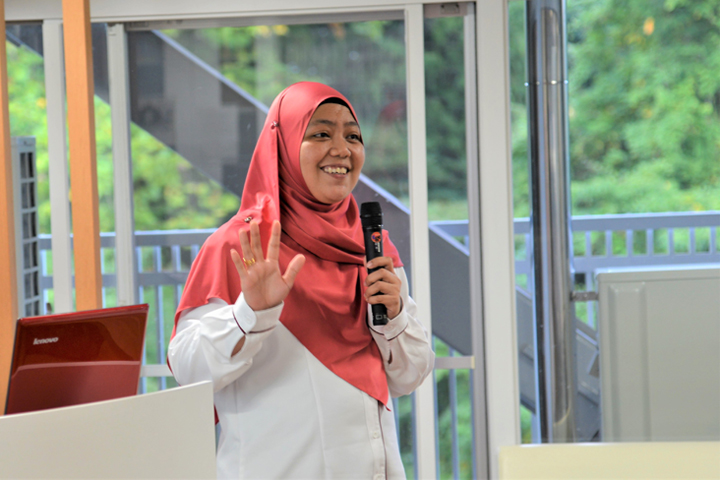 セミナーには,筑波大学の協定校であるマレーシア工科大学から研究マネジメント・センター課長代理のMs. Sharifah Nurintan Fazlina Binti Syed Mohamedをお招きし,マレーシア工科大学の概要と研究体制や,マレーシアの国の魅力について学ぶ機会をいただきました。また,同氏からは,つくばグローバルサイエンスウィークや,筑波大学の職場環境,日本文化など,日本で感銘をうけた事柄の紹介がありました。
