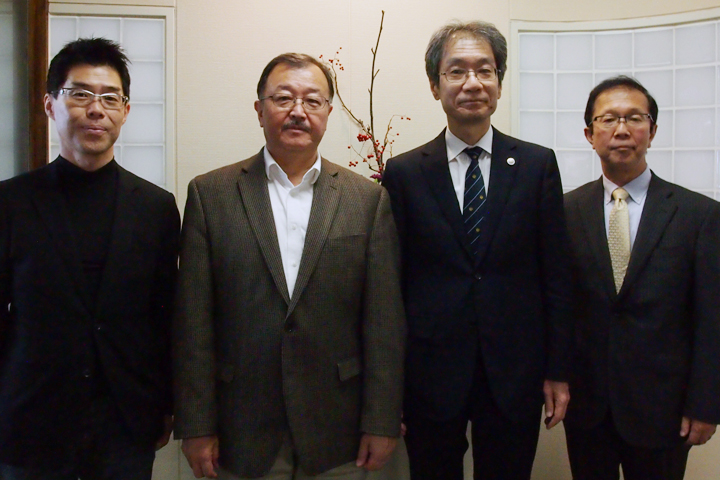 (若槻壮市博士を囲んで(左から岩崎憲治教授、若槻博士、木越副学長、深水昭吉副センター長))