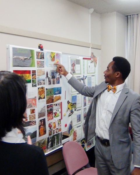 プレゼンテーションでは、留学生が自国についてのスライド発表とポスター発表を行いました。日本語でクイズ等を交えながら楽しく説明する等、参加者との活発なやり取りがみられました。