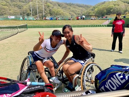 4月18日~21日に神戸市のしあわせの村テニスコートで開催された「DUNLOP KOBE OPEN 2019」(車いすテニス国際大会)において,硬式庭球部の船水梓緒里選手(体育専門学群1年)がシングルスでベスト4,ダブルスでは世界ランキング2位の上地結衣選手と組んで優勝を果たしました。