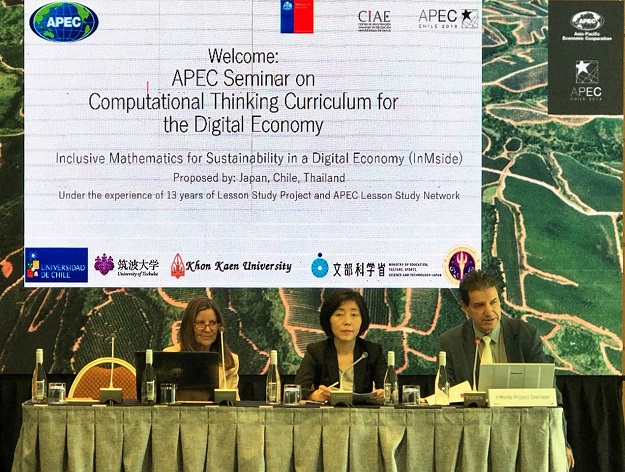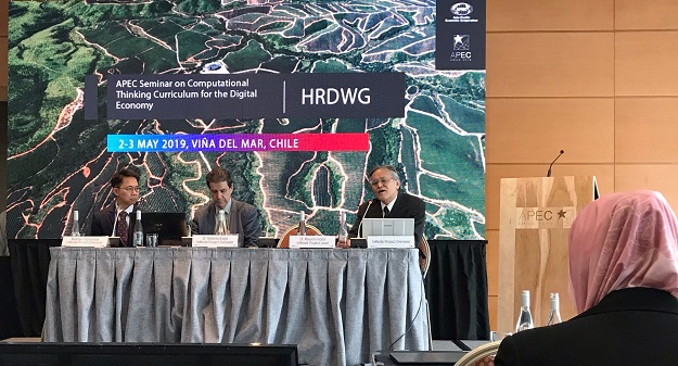 デジタル経済を推進するAPEC高級事務レベル会合(SOM2)で、礒田正美教授・教育開発国際協力研究センター長(人間系:APEC プロジェクトInMside代表者)は、APEC各国から高等学校情報科・数学科教育課程調査官を招聘し、5月2~4日にAI時代の教育課程改革セミナーをチリ・ビニアデルマールで開催しました。この会議は、2019年2月7~9日に実施された第13回筑波大学APEC国際会議で準備された討議草稿をもとに実施され、各国専門家は自国教育課程を報告し、APEC各国への教育課程改革勧告案を準備しました。APECでは2030年に向けて高質人材育成のための教育課程の標準化を志向しています。セミナーは、APECのもとで、チリ大学・筑波大学・コンケン大学、チリ教育省・文部科学省・タイ高等教育省が共催して実施されました。