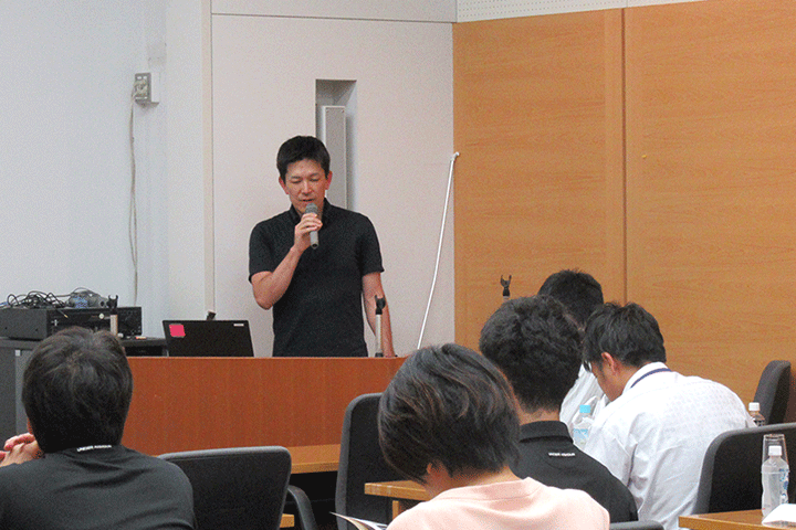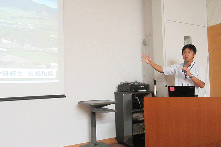 (講演を行う海外派遣研修参加者)