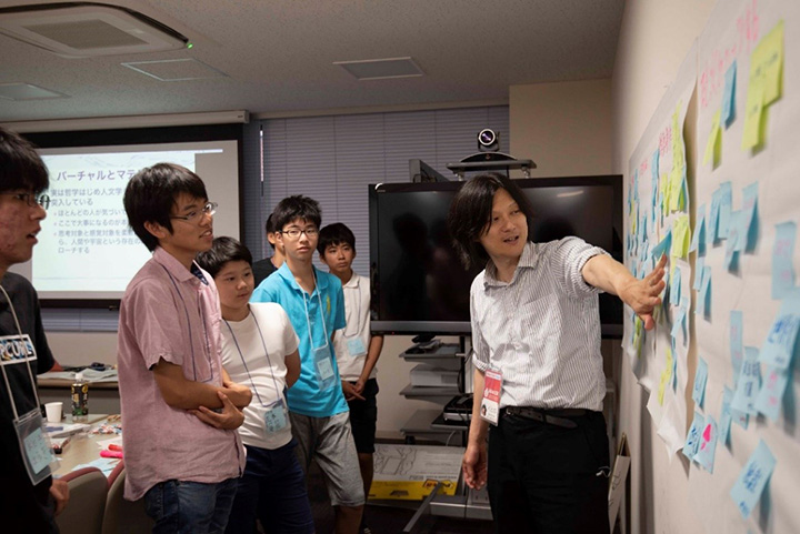 本プログラムは、中学生・高校生にはなじみが薄い「哲学」を身近なものとして考えることができるよう、哲学・思想の内容を可視化・可触化する実施代表者の研究について講義した上で、ワークショップを3セット行いました。「目に見えない対象を考え、多様な人々と共有する」という様々な学問に通底する体験をすることで、受講者は哲学への関心を持ってくれたようです。