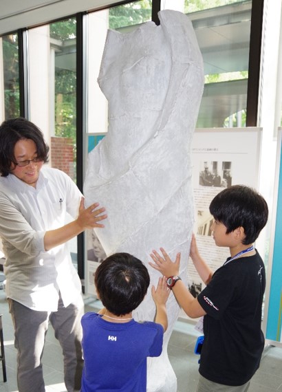 毎年4月の科学技術週間に筑波キャンパスで開かれる「キッズ・ユニバーシティ」の姉妹版として企画し、今年で4回目となります。毎回、工夫を加えており、今回は「彫刻タッチツアー&アートメダル制作体験」「飲みものの中の糖分量を見てみよう」など3コーナーが初登場しました。