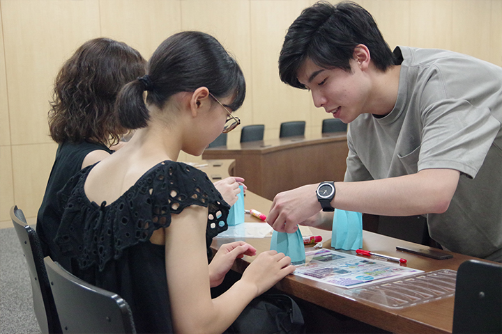 参加者は小・中学生やその家族ら約300人。校舎1階のラウンジや教室に設けられた11のコーナーを巡って、夏休みの1日を有意義に過ごしていたようです。