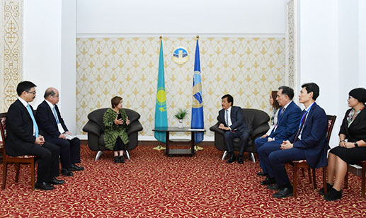 調印式には、本学からベントン・キャロライン副学長(国際担当)、東照雄特命教授(国際室)、小野正樹教授(人文社会系)、KazNUからGalym Mutanov 学長、Ramazanov Tlekkabul副学長(研究担当)、Khikmetov Askar副学長(教育担当)、Paltore Yktiyar(東洋学部長)、二ノ宮崇司招聘教授(筑波大学アルマトイオフィスコーディネーター)他が出席しました。調印式は、QS Worldwide 2019(https://www.qsworldwide.org/kazakhstan-2019/)の会場を利用して行われました。
