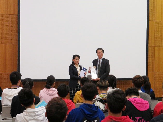 歓迎式典では、佐藤忍副学長(学生担当)及び訪日団代表の挨拶や記念品交換が行われました。