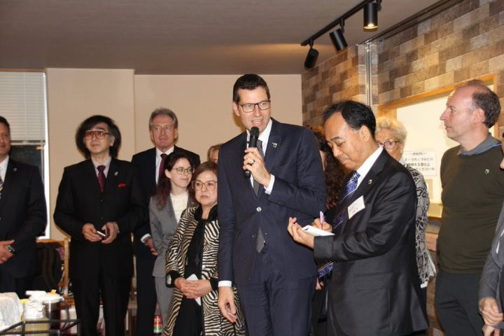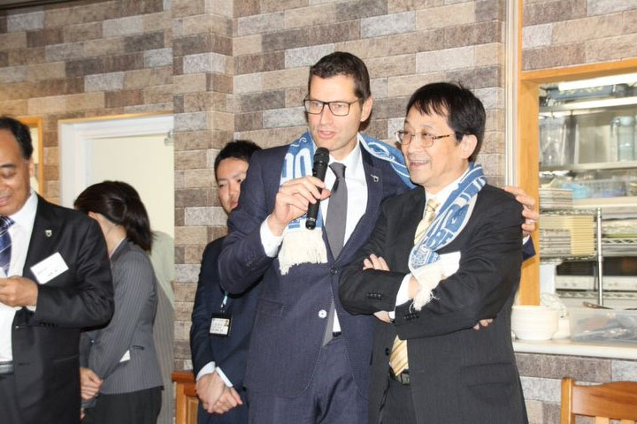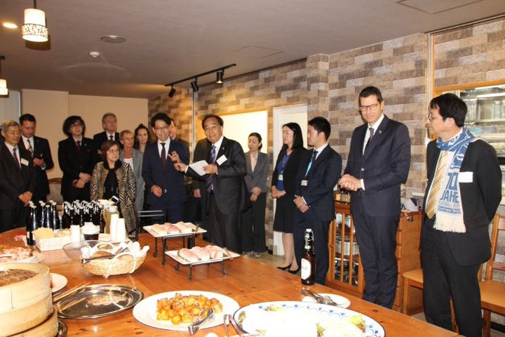 懇親会には、永田学長、五十嵐市長らつくば市関係者、アイスキルヒ市長らボーフム市関係者、ボーフムに関わりのある本学関係者など、総勢50名が参加し、両市間の親睦を深めました。