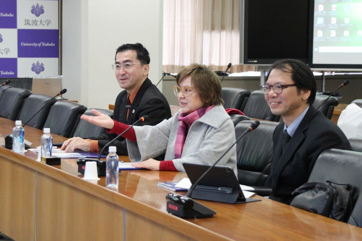 (左から野村名可男准教授、ベントン・キャロライン副学長、ホー・キョン准教授)
