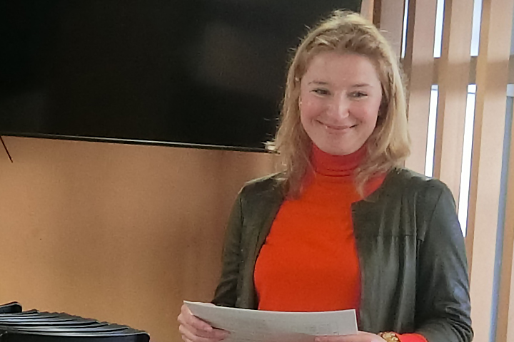 この研修では、エレナ・ツィガルニツカヤ助教(人文社会系)を講師として、初級では、留学生対応を中心に、窓口で使う英単語やフレーズを学び、中級では、本学内の業務で使用する英会話表現や、電話の応対等を学びました。