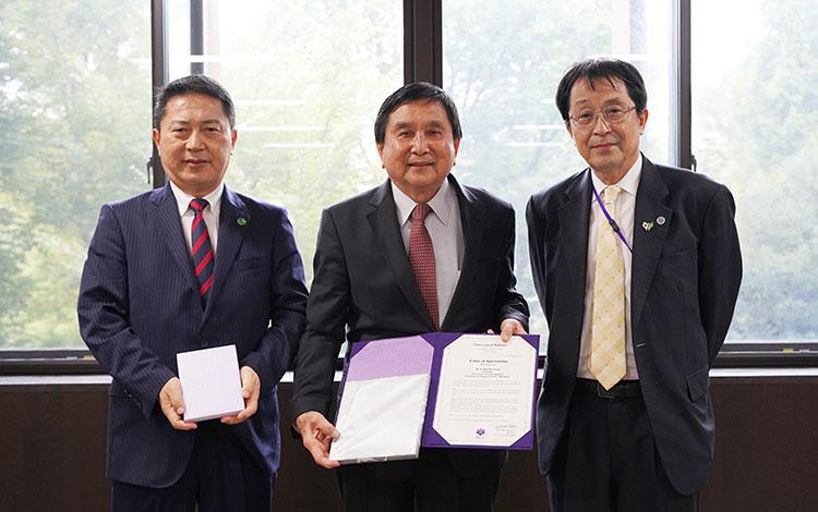 また、永田学長から市川会長にこれまでのご協力とご支援をいただいたことに感謝状を贈呈しました。